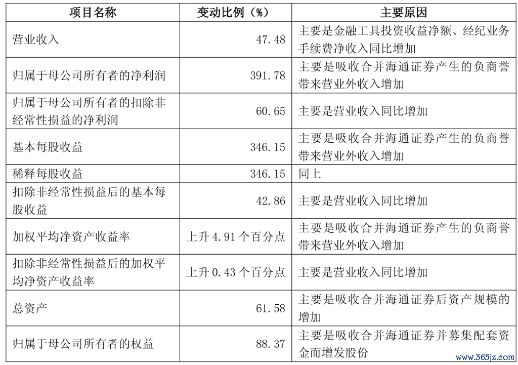 一季报显示,国泰海通营业收入的增长主要是金融工具投资收益净额、经纪业务手续费净收入同比增加。而归属于母公司所有者的净利润的增长,主要是因为吸收合并海通证券产生的负商誉带来营业外收入增加。