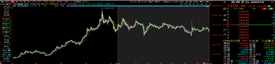 笔者发现,该基金在2020年4季度买入5.05万股的贵州茅台,2021年1季度持有5.05万股,2021年2季度持有2.69万股,到了2021年3季度已经没有了此前购买的股票份额。然而,在该基金持有期间,在2020年10月9日-2021年9月30日股票价格上涨了10%。